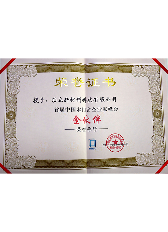 首屆木門窗協(xié)會金伙伴榮譽
