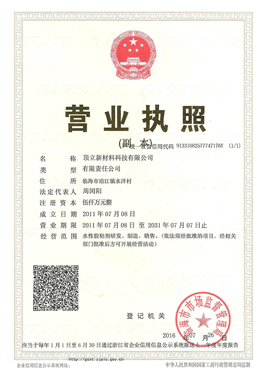 頂立新材料科技有限公司 營業(yè)執(zhí)照副本